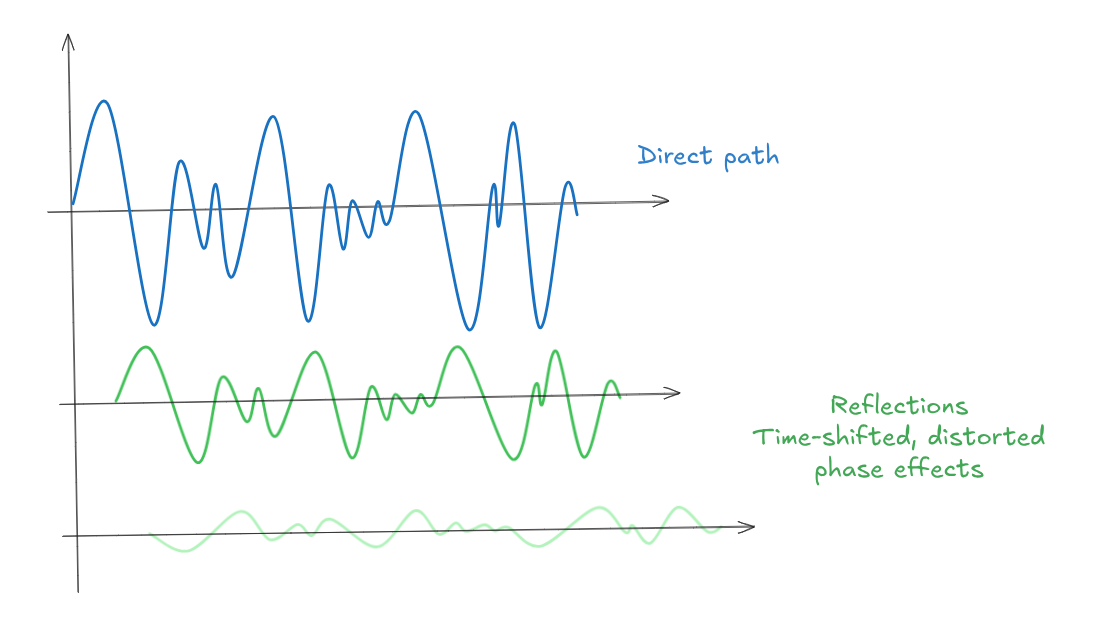 The transfer function includes: time of flight between speaker and mic, reverb, different echo paths...