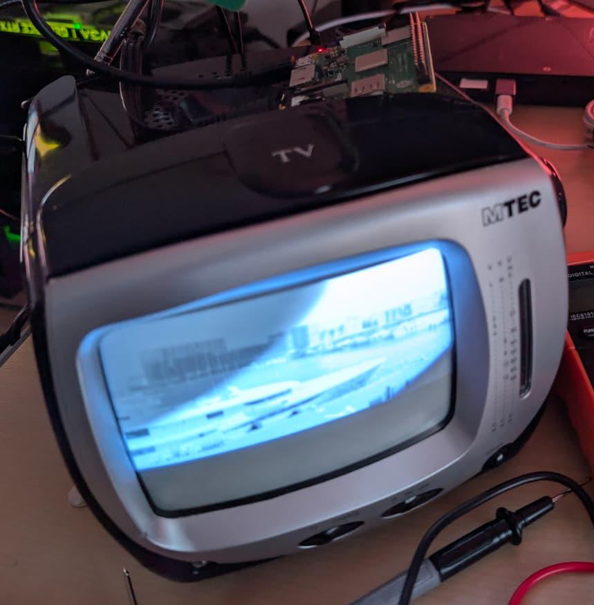 I don't think there will be much use for this project. Ignoring that this is a CRT (720x576 black-and-white), the TV I picked up is pretty noisy. I don't miss the high pitched whine of a CRT (mine is 11 KHz, if you're wondering). Still it was fun to make this work, and I did learn a few things: